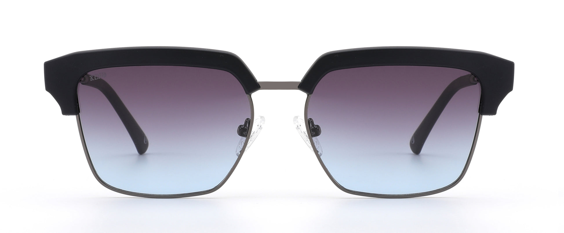Matte black upper frame with violet-to-blue gradient lenses (UV400)