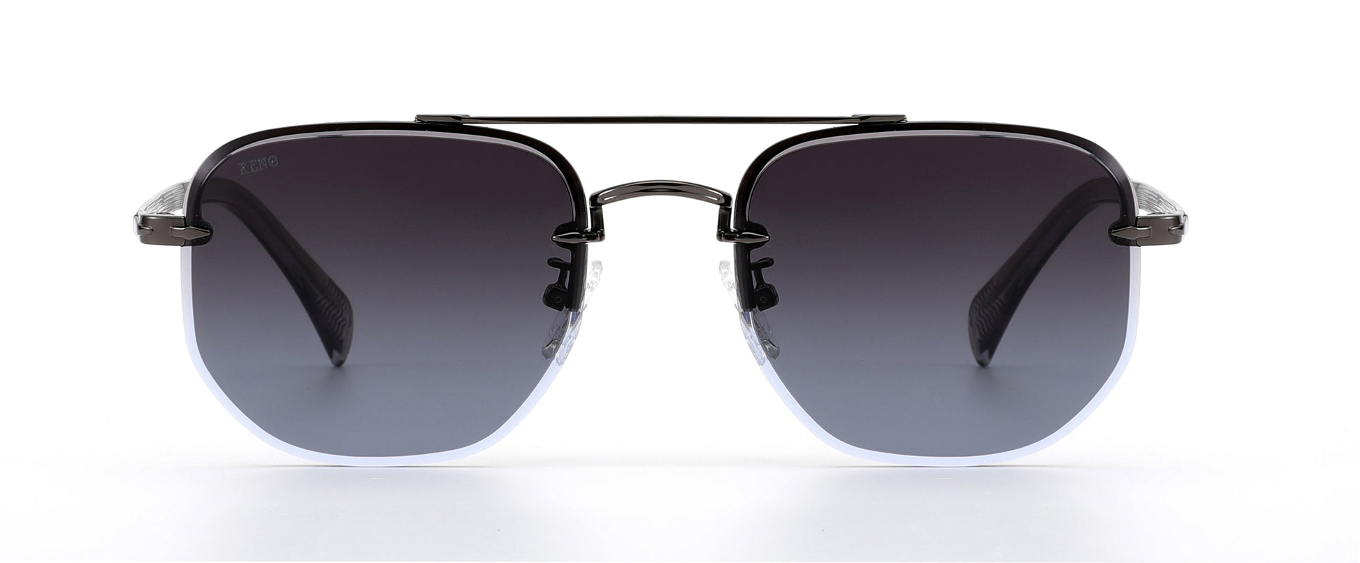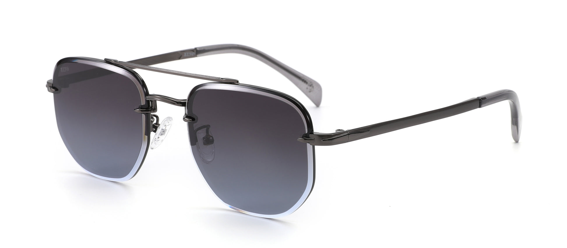 Form meets finesse in the XENO Precision in Silver Fade. Featuring a cool black-to-ice gradient lens and sleek gunmetal hardware, this design softens a commanding silhouette with just the right edge. The floating top bar and geometric shape give it a futuristic profile, made to elevate every look.