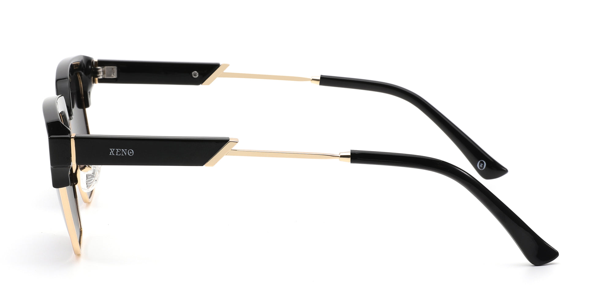 Where structure becomes style. XENO Blockform in Gloss Black Sunglasses is a statement piece built with heavy upper framing, sharp-cut lenses, and gold detailing that balances edge with elegance. This isn’t just a pair of sunglasses - it’s a silhouette in motion.