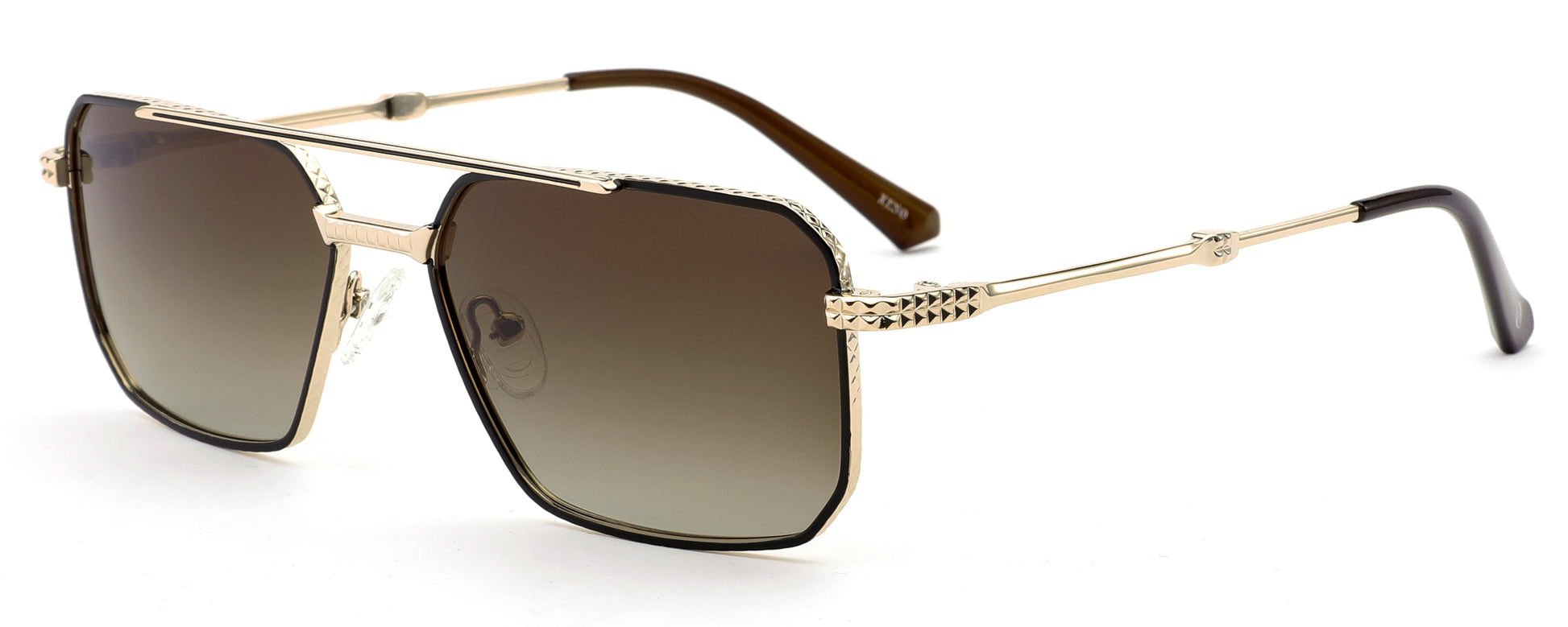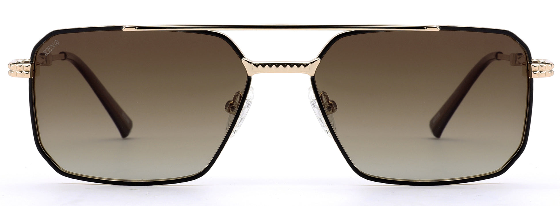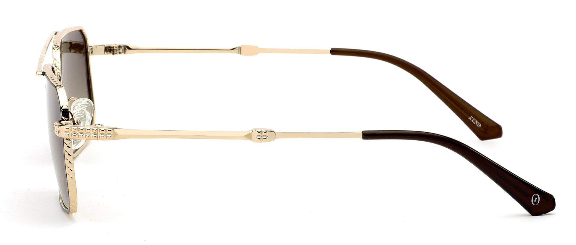 Luxury in structure. Xeno Titan Edge in Gold features a squared geometric silhouette, rich gold metal frame, and deep brown gradient lenses. With its notched mid-bridge and textured temples, this frame strikes the balance between elegance and bold design - an essential for those who own their presence.