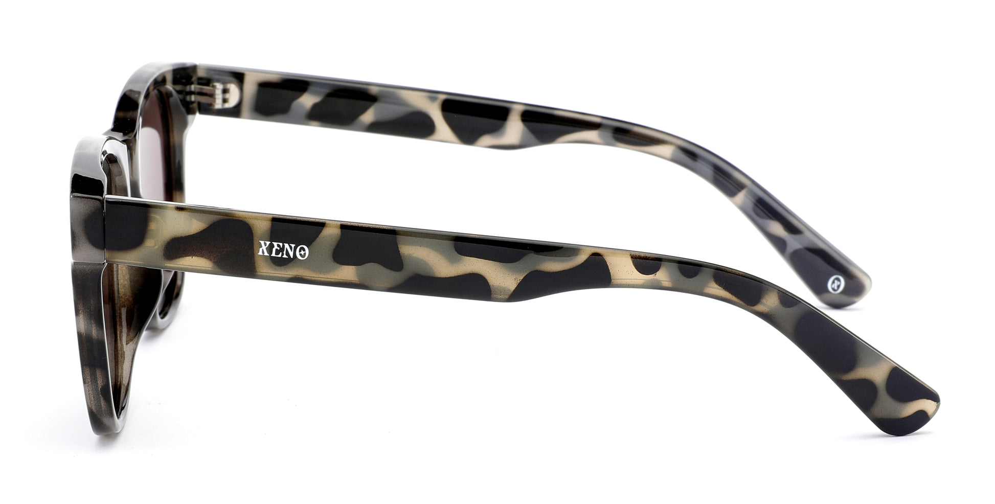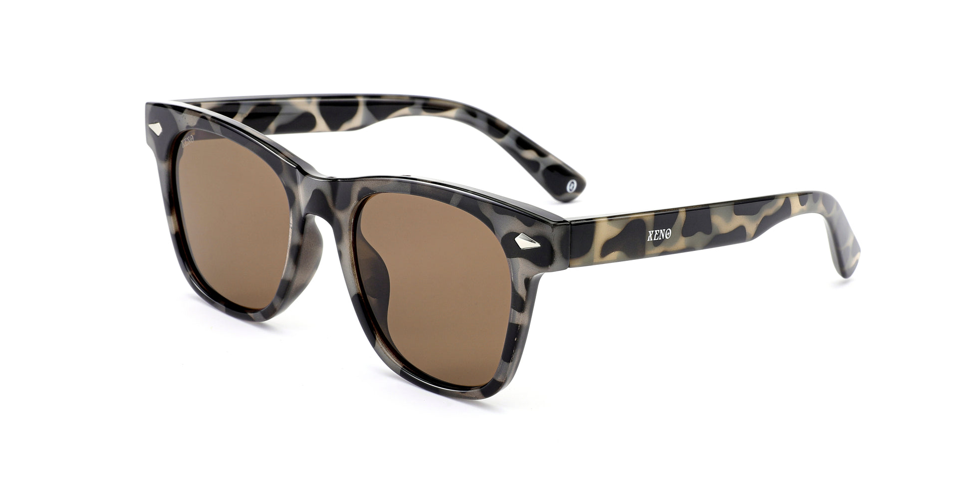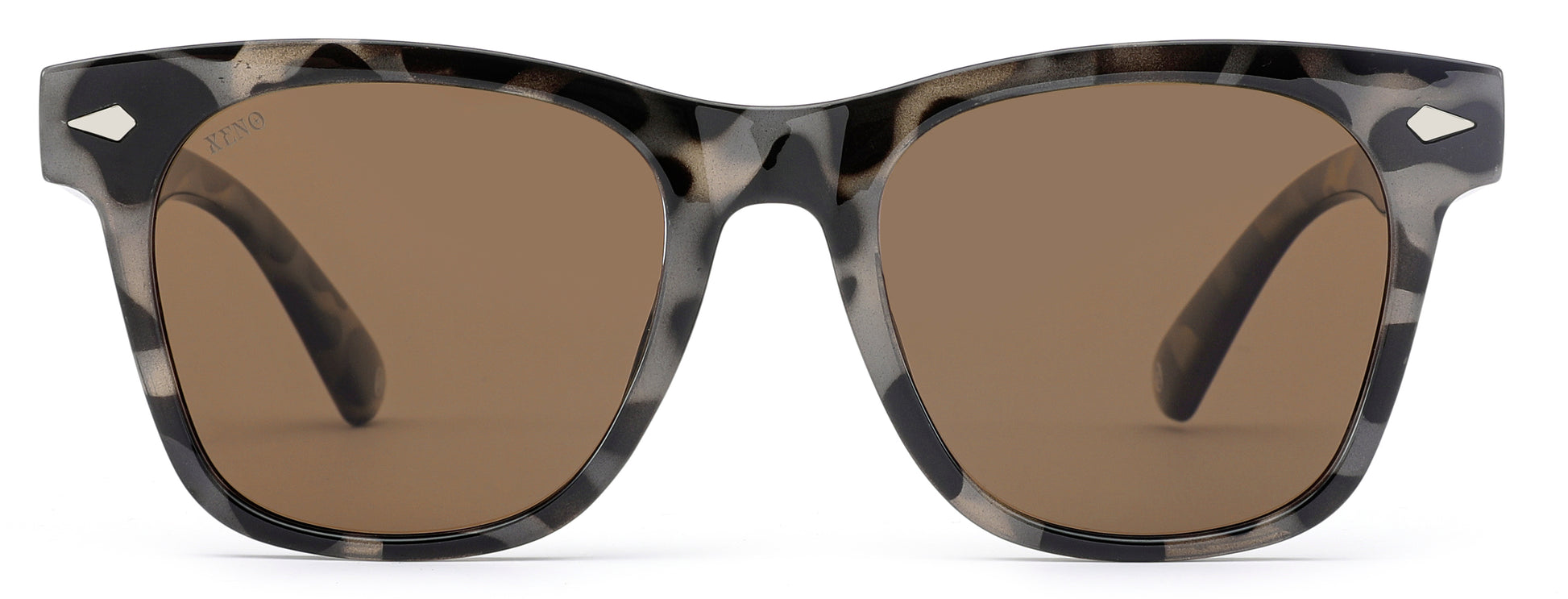 The classic gets a remix. Xeno Vue in Tiger Tort Sunglasses merges a modern neutral camo acetate with warm brown lenses in a timeless wayfarer frame. Finished with metallic diamond rivets and polished curves, it’s made for those who do low key loud.